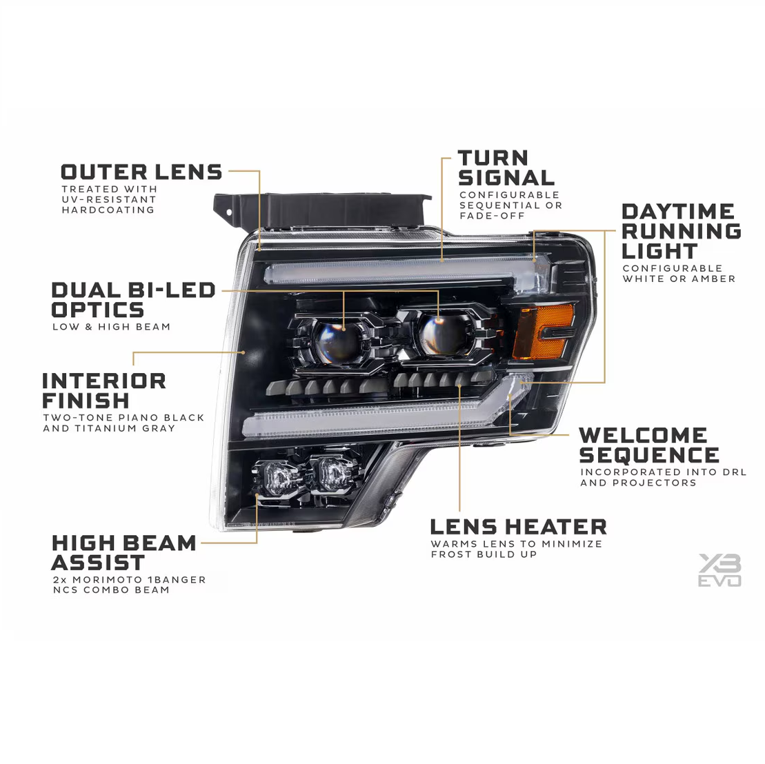Sequential LED DRL – When starting your F-150, the optics will automatically illuminate in a multi-stage sequence before turning back off. Unlike every other feature baked into XB Evo headlights, this does absolutely nothing to improve performance. But executed properly, it does look cool, and there’s nothing wrong with that!