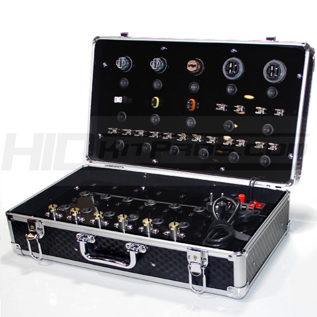 Show customers the difference in color, brightness, compare incandescent to LED and more with the universal switched countertop display from HID Kit Pros. Included power supply makes set-up a piece of cake; simply plug in to the wall and install your LED or incandescent bulbs in each of the sockets. Easily show customers the value in ditching their power hungry halogen and incandescent bulbs and upgrading to LED lighting technology. Each socket is individually switched to turn on or off any bulb or turn them all on at once. A necessity for store owners, trade shows, fairs and more!