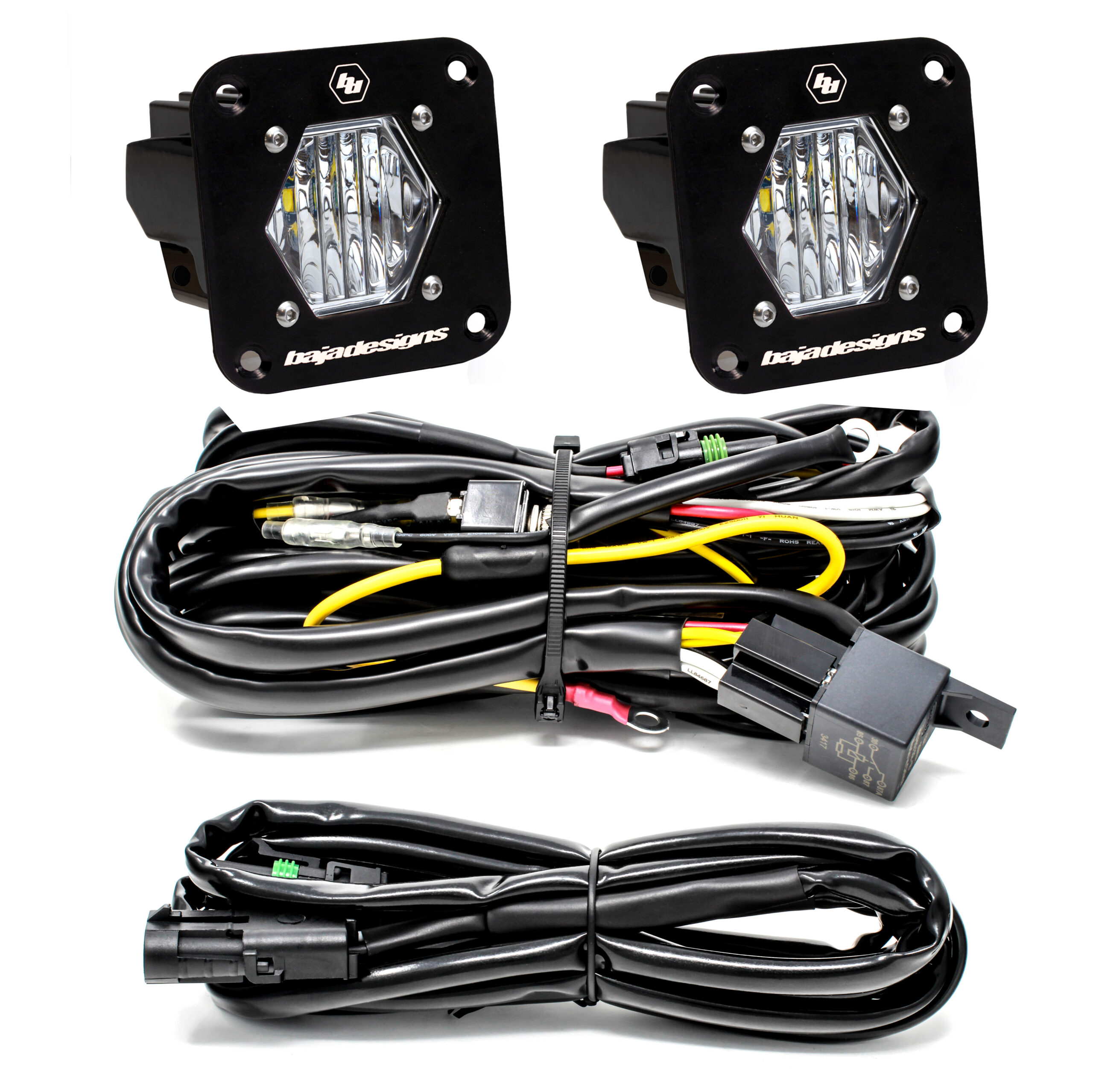 One of the key features that makes our S1 Flush Mounts unique is that the hole to mount them can be made by a 2.5 inch hole saw. Another benefit to this kit is that it allows for the user to take the guesswork out of the wiring. Included is a relay harness with extensions, this makes for an extremely easy install!