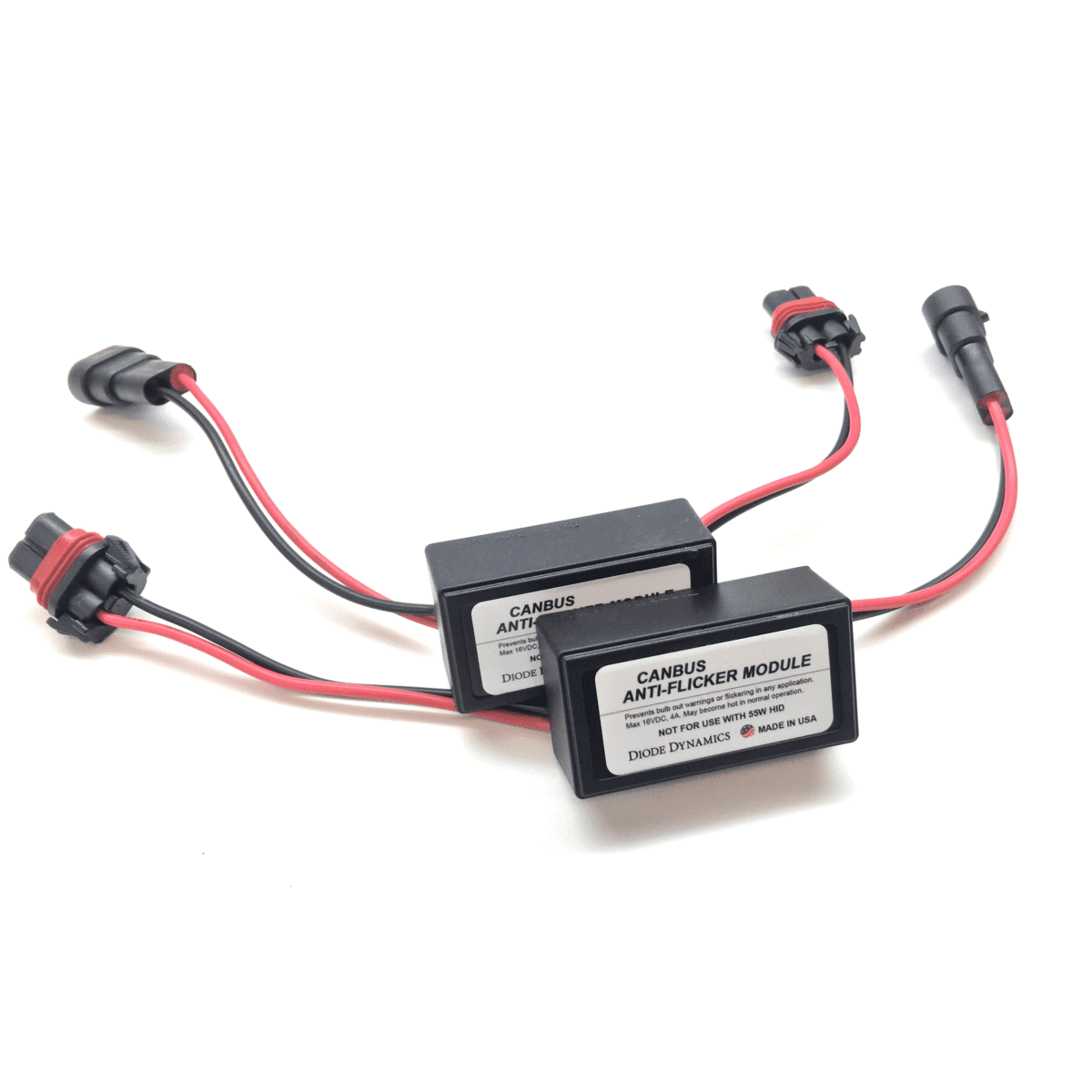 USA – The module can be used with 35W HIDs or any LED bulb. It will prevent flickering or bulb out errors in low beams, high beams, fog lamps, or daytime running lights. Made in USA by Diode Dynamics Manufacturing.