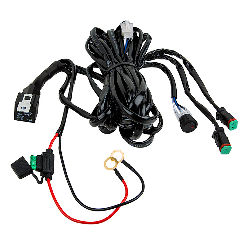 These universal wiring harnesses are a perfect way to power your auxiliary lighting for aftermarket lighting. One wiring harnesses will provide power to a set of lights (2x outputs) allowing you to wiring them directly to the battery while having a pre-wired on/off switch. Switch can easily be removed and replaced with any other 3-wire switch. Includes heavy duty wiring and fuse holder with fuse allowing for a simple installation. Complete wiring harness for LED auxiliary lights.