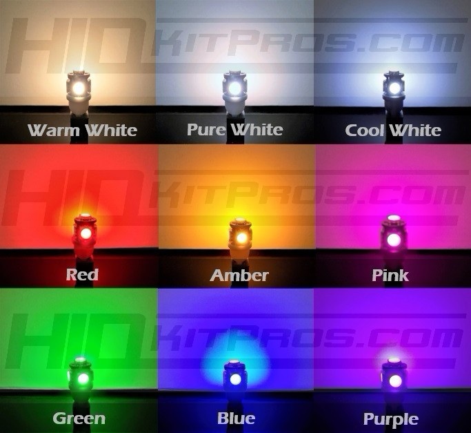 Options – Color options can get confusing, especially with so many variations of the same color, we get it. We offer 3 different shades of white (warm white, pure white and cool white) as well as various other colors. A pure white is going to give off no yellow and no blue, simply a pure bright white output matching closest to a 5000k HID bulb. A cool white bulb will provide a slight hue of blue as you would see generally on a newer Audi and will match closest to a 6000k HID bulb. Warm white provides the most amount of light output with a more yellow output closest to a factory halogen/incandescent or 4300k HID bulb.