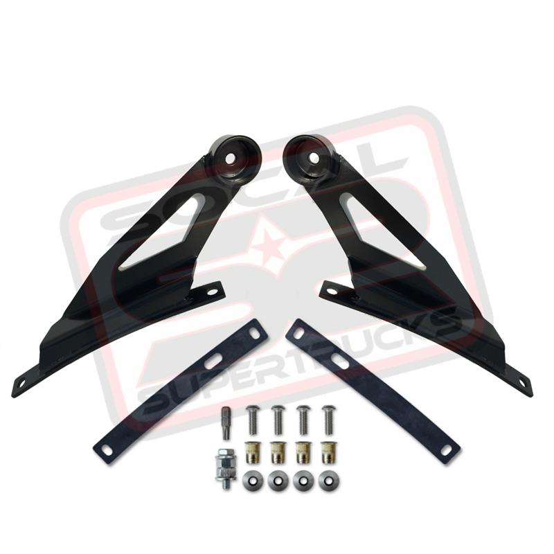 Looking to add a 50″ LED Curved light bar onto the top of your 2015, 2016, 2017, 2018 and 2019 Chevy Silverado or GMC Sierra 2500HD and 3500HD truck? We have them! SoCal SuperTrucks is the only manufacturer to design a production bracket for a 50″ LED curved light bar with a single side post mounting bolt light bar. The SoCal SuperTrucks Silverado / Sierra 2500HD 50″ LED Curved light bar mount bracket kit is made 100% in the USA only using the highest quality materials available. These LED roof mounting brackets take all of the hassle out of getting that massive 50″ LED light bar above the windshield of your Silverado or Sierra truck. SoCal SuperTrucks designed their 50″ LED curved light bar mounts to easily install with full step by step instructions and template to drill the holes. The install is completely done from the outside of the truck and no removal of the interior is needed on the 2015-2019 Silverado or Sierra 2500HD or 3500 trucks. The 50″ LED Curved light bar mount bracket kit also comes with rubber gaskets to protect you from the elements along with stainless steel mounting hardware that will provide a long lasting quality product. The light bar roof mount brackets feature a low profile design getting the LED light bar as close as possible to the windshield for a clean aerodynamic look. Adding a 50″ LED curved light bar to the top of your Chevy Silverado 2500HD or GMC Sierra 2500HD will give your truck the true offroad look and help light up the night.