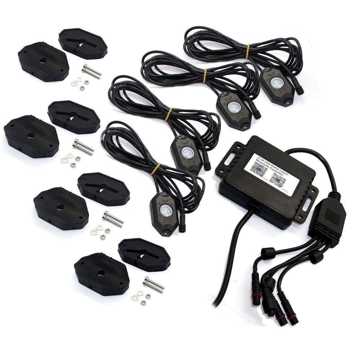 Defined – The all new RGB Bluetooth LED Rock Light Kit from HKP™ sets the bar high with quality components from the many mounting abilities to the easy to use mobile app for Android and iOS. Some of the many options include fade, strobe, solid color, multi-color, music activation and more.