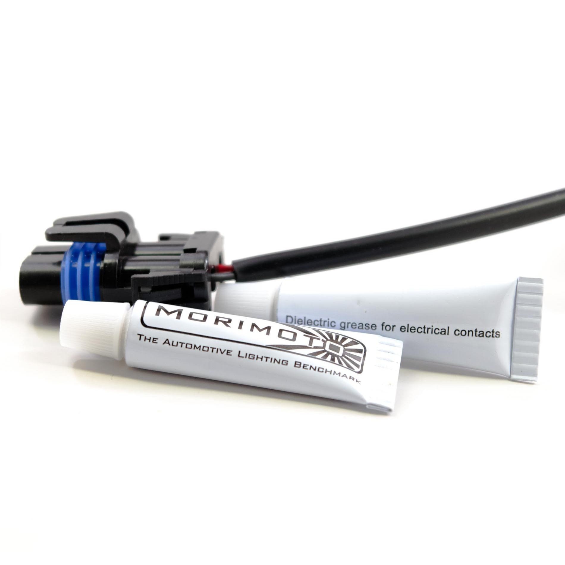 Dielectric –Â Grease is the most common aid to assist electricity from passing between two connectors. Since lots of electrical connections are common in headlight upgrades, it only makes sense for us to offer the stuff!