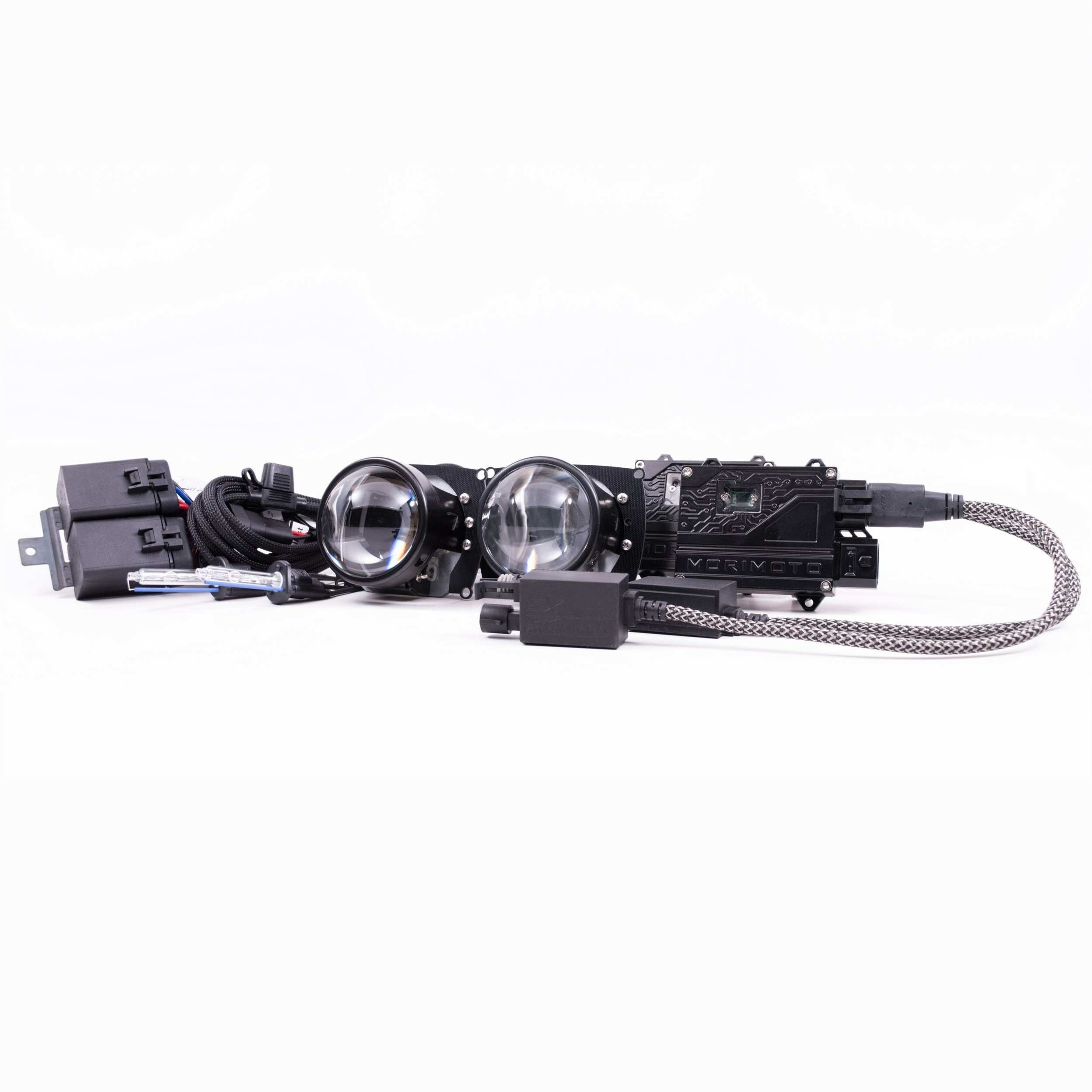 Bi-Xenon Projectors: Morimoto’s most modern bi-xenon, the Mini H1 8.0, was an instant winner upon launch. Representing the first full overhaul of the Mini H1 since way back when the 1.0 came out, it’s now one of the most advanced headlight projectors in the world today. Revised reflector optics paired with their curved cutoff shield produces one of the widest low beam patterns we’ve ever seen, and a high beam that will easily go the distance. Kuria Optic clear lenses maximize intensity throughout, and keep the cutoff line sharp, colorful, and attractive. New side-action solenoids are more than 3x stronger than the old and fussy vertically-sprung units. Result: Maximum light on the ground, zero glare to oncoming traffic.