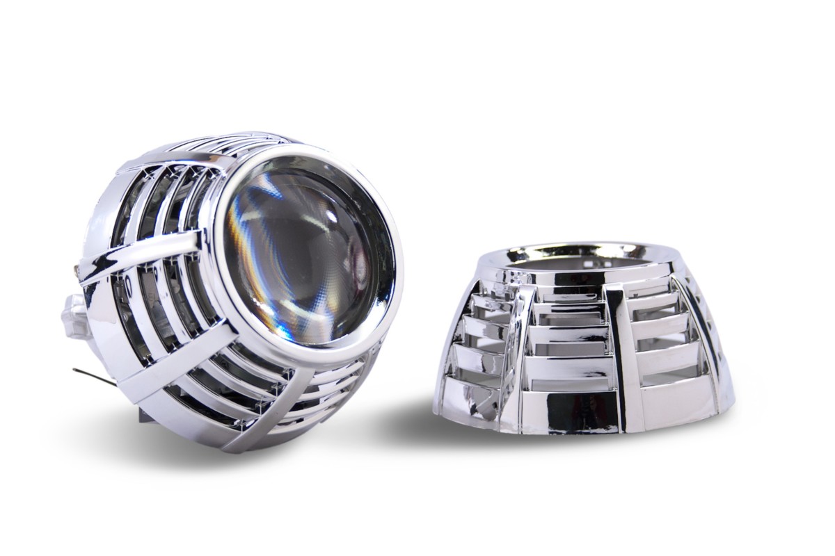 G37-R: Vents Galore make the G37-R shroud stand out. This radically designed shroud offers all the coverage you need, but still allows light to escape through the four staggered layers of chrome bands that surround it’s body. The G37-R shrouds are inspired by the OEM Infiniti G headlight shroud, taking that design and making it more ideal for retrofitting.