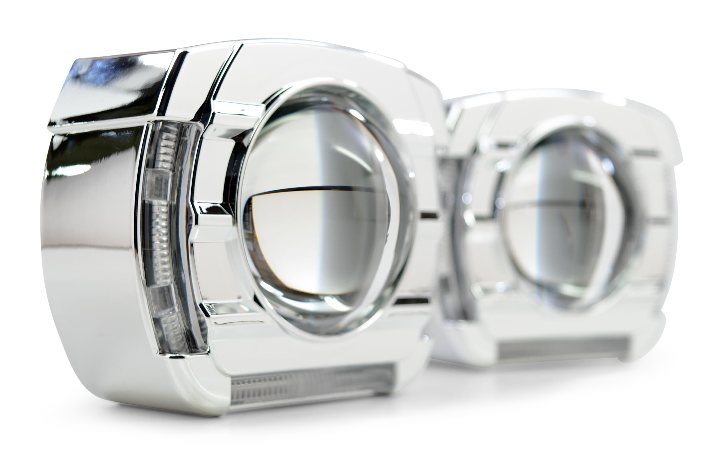 LED Halos: Are a unique and effective way to further customize the look of your projector retrofit. The all new switchback and color changing systems are easy to mount on the front of your shrouds, are reliable, and of course, awesome looking. These shrouds feature DRL-Vents that will glow with light if you wanted to do something a bit different and mount the halos inside.