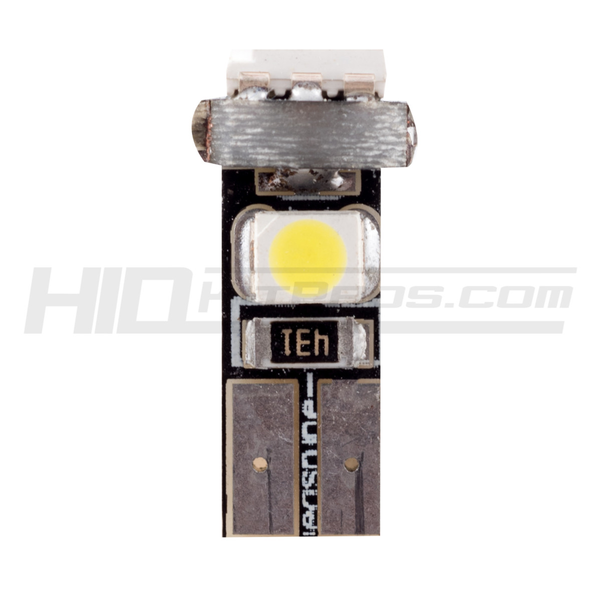 T5 LED bulbs from HKP™ replace all T5/74 wedge base incandescent bulbs and is the brightest replacement bulb available with LED’s on top and sides giving you the most amount of light output. If you are looking to illuminate directly ahead and around the sides of the bulb, this is the right bulb for you. If you are looking for a more directional beam of light, see our less expensive, directional bulbs here. These bulbs feature a “CAN-Bus” error code eliminating chip inside which clears any bulb out error messages you may receive when converting from incandescent to LED.